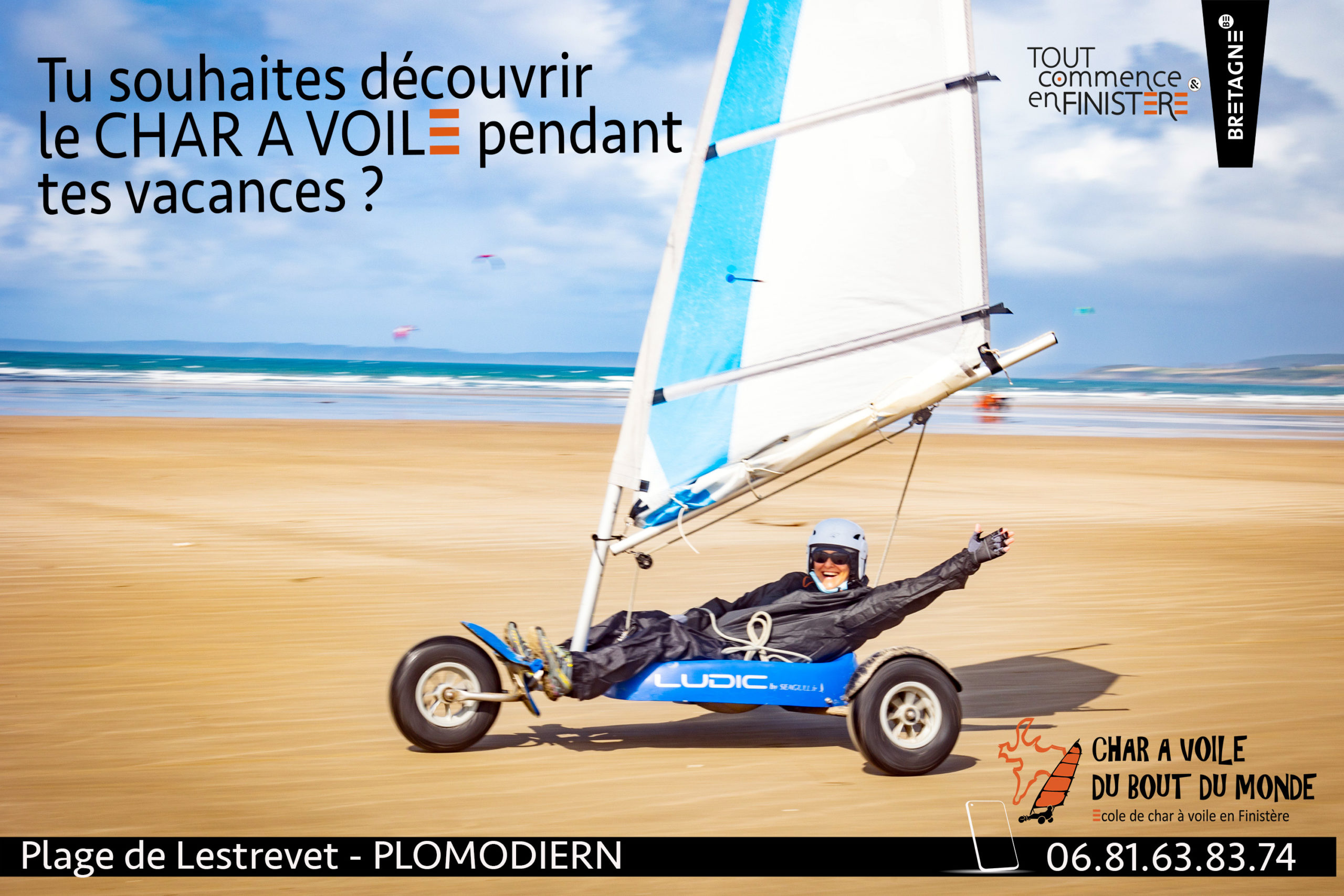 Dans une semaine, c’est les vacances scolaires de février. Vous ne partez pas aux sports d’hiver ? Alors direction le Finistère, plage de Lestrevet à Plomodiern pour vous essayer au char à voile 😉