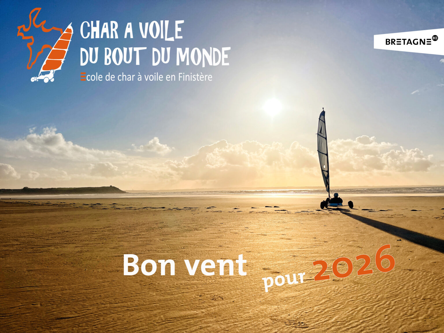 Chers amis du char à voile, alors que 2025 tire sa révérence, nous tenons à remercier chacun d’entre vous pour votre passion et votre enthousiasme. Cette année a été remplie de beaux moments de glisse et de partage. Pour 2026, nous vous souhaitons des vents favorables, des sensations fortes et des moments inoubliables pour toujours plus de plaisir sur nos belles plages de Finistère. Continuez à suivre nos aventures et à partager cette passion qui nous unit. Toute l’équipe de char à voile du bout du monde vous souhaite une année 2026 exceptionnelle. A très vite !
