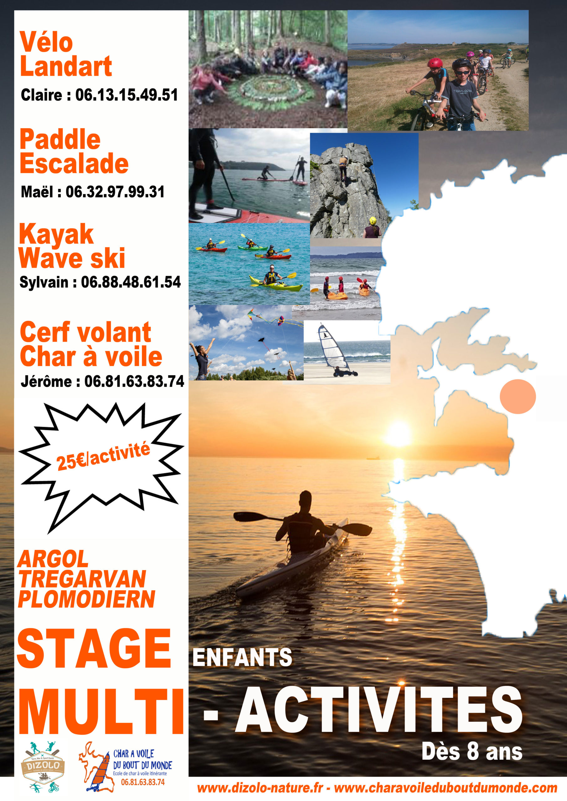 Au programme, Char à voile, escalade, VTT, paddle, kayak, cerf volant,…