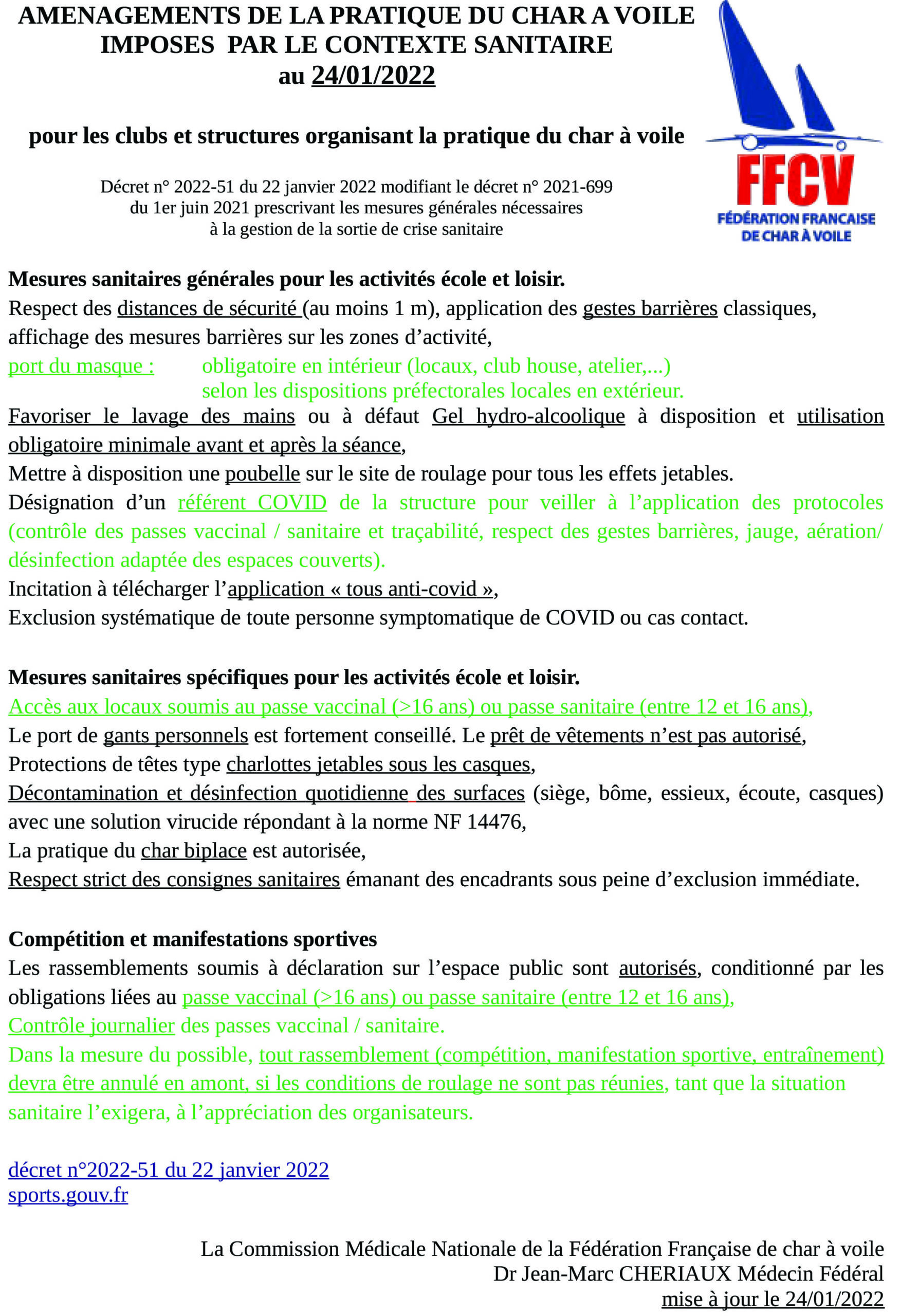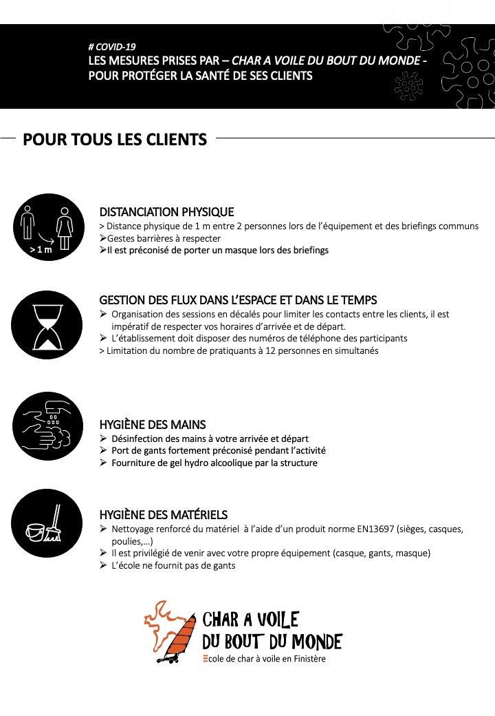 Rappel du protocole sanitaire de l’école de char à voile du bout du monde